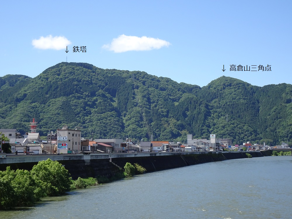 高倉山は備中高梁駅からは南に見える山で、山頂にある三角点の標高は382.73m(基準点成果等閲覧サービス:国土地理院による)です。