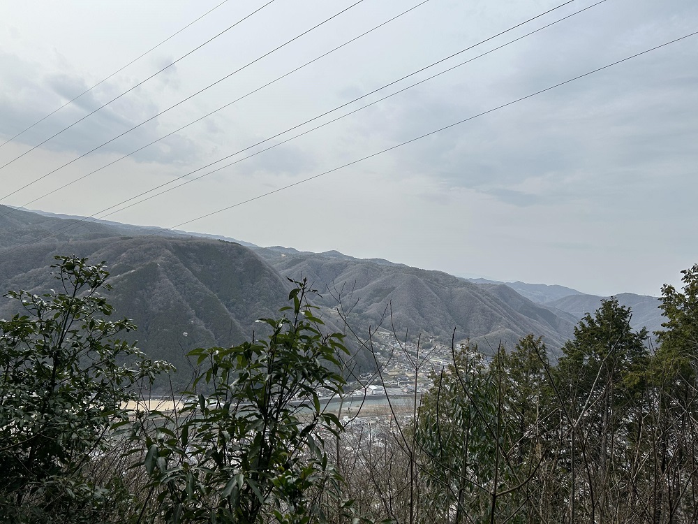 鉄塔近くにあるわずかに眺望のよいところ。落合町近似や落合町阿部のあたりが見えます。ここから三角点までの間には眺望のよいところはありません。