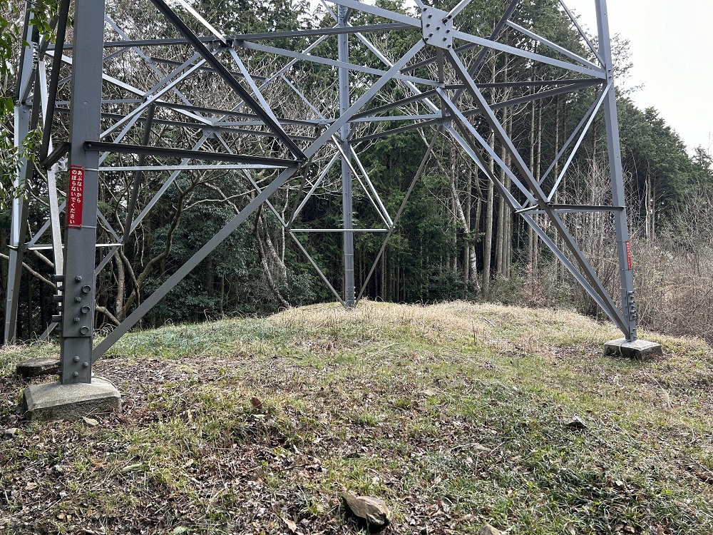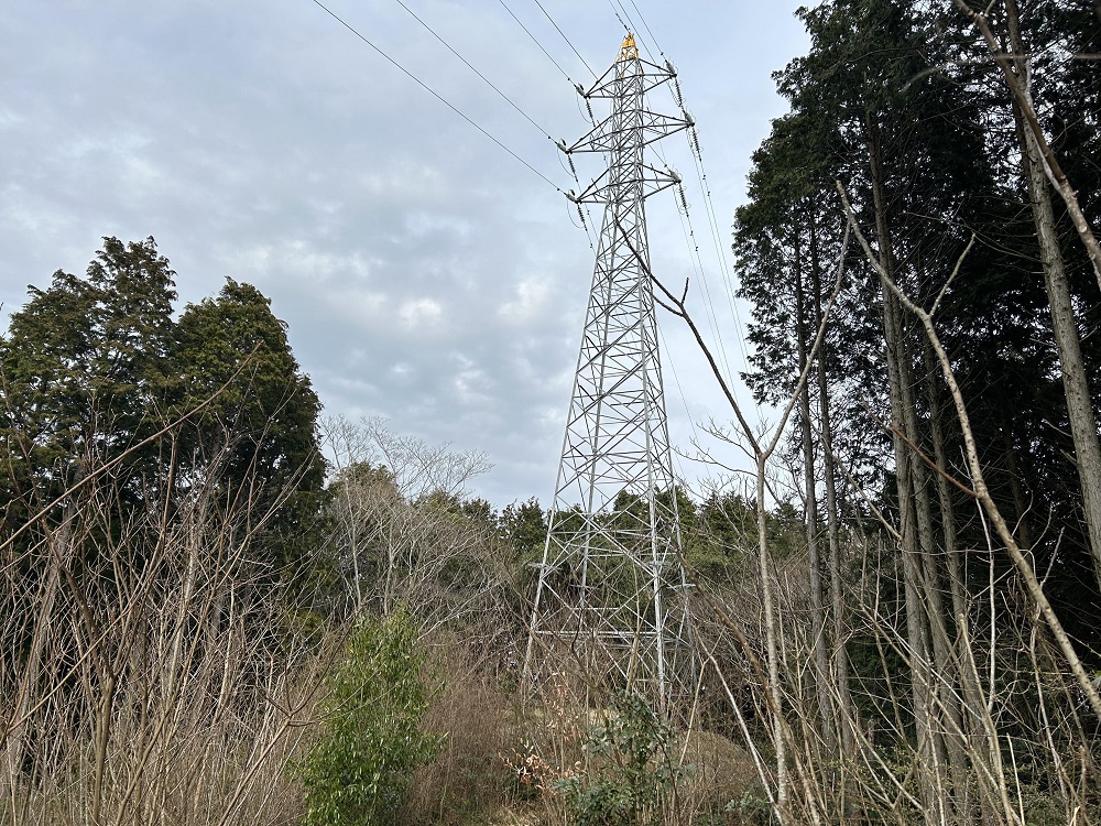 山道を登っていくと鉄塔に着きます。地図上では駐車場から鉄塔までの距離は短く見えますが、ずっと上りになります。