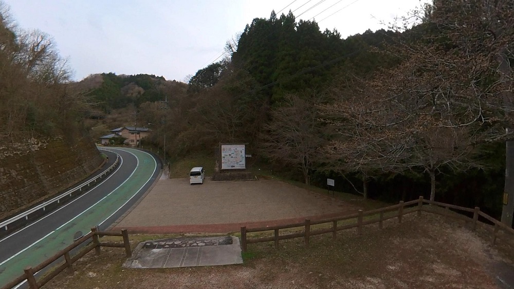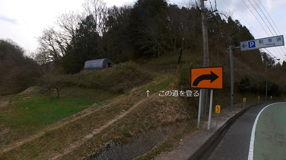 この駐車場から吉備中央町方面へ少し歩きます。