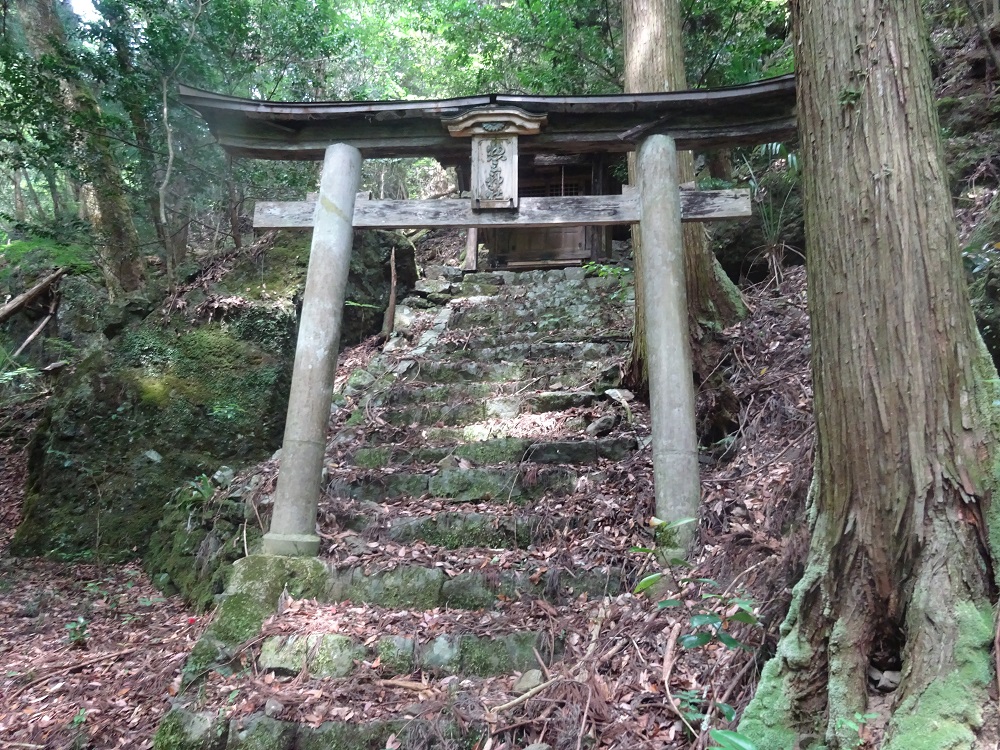 県道313号から川に下りていきます。川までの道は草を刈っていました(2024年6月現在、だいぶ草が伸びてきましたが)。2つの川が合流しているので、北側(奥側の川)を進みます。山側の少し高いところに惣三神社へ行く細い道があるので、この道を進みます。川を渡って5分ほどで惣三神社に着きます。